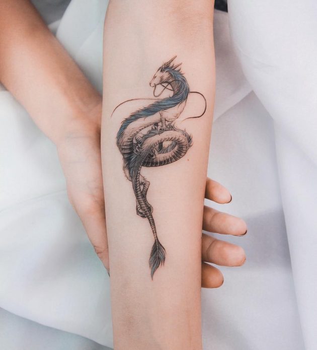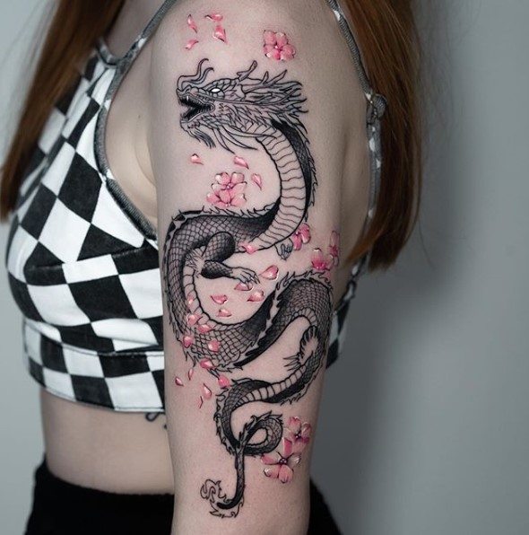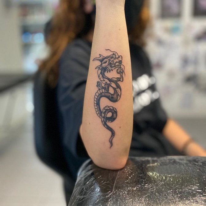 Сегодня пользуются особой популярностью японские татуировки, к примеру, карпы или драконы. Однако, они очень сложны в нанесении, поэтому не каждый мастер возьмется за работу. Рисунки нужно наносить максимально яркими красками, каждая деталь должна быть отлично проработана. Дракон олицетворяет власть и могущество, величие и мощь.