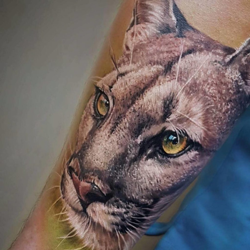 Изображение имеет очень реалистичный характер, кажется, что тигр вот-вот выпрыгнет из руки и начнет дотянуться до добычи, или морда, приложенная к одной из частей тела, вот-вот подмигнет своему хозяину.