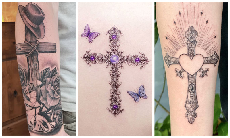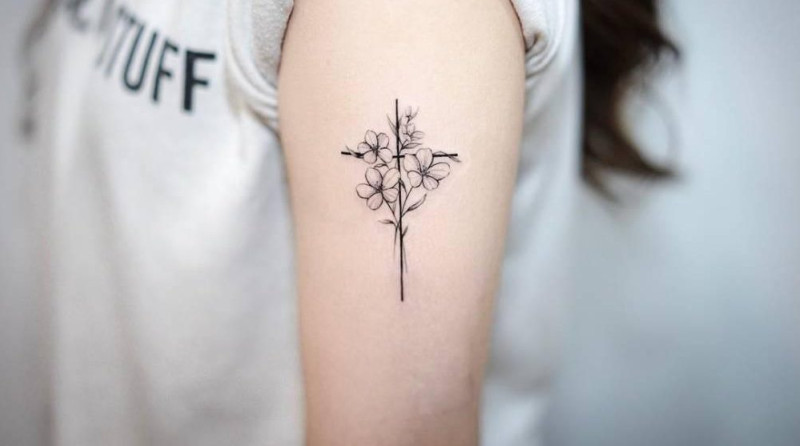 Это один из древнейших символов, используемых многими культурами по всему миру. Вертикальные и горизонтальные линии представляют природу отца и матери, а точка их встречи символизирует союз между материальным и духовным миром. Популярный эскиз — крест жизни. Это древнеегипетский символ, связанный с удачей.