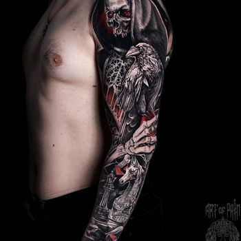 Случаются ситуации, когда мужчина на половине пути бросает идею создавать тату-рукав. При этом он ограничивается только 1\2 части руки или ее 1\4 частью. Если заложен эскиз тату рукава для мужчины, можно со временем изображение набить до конца. Помимо этого, мужчина сможет еще несколько раз подумать про какие-то перемены в оставшейся части, которая не закончена.