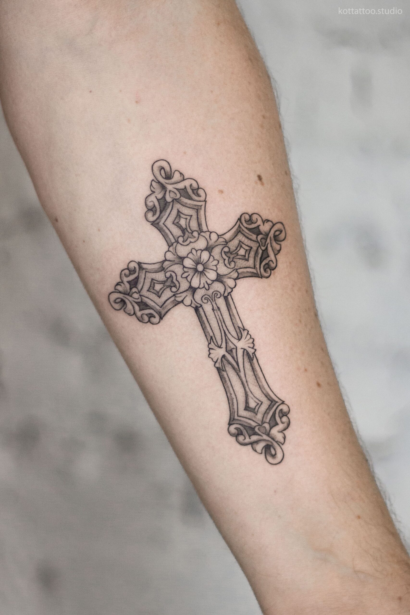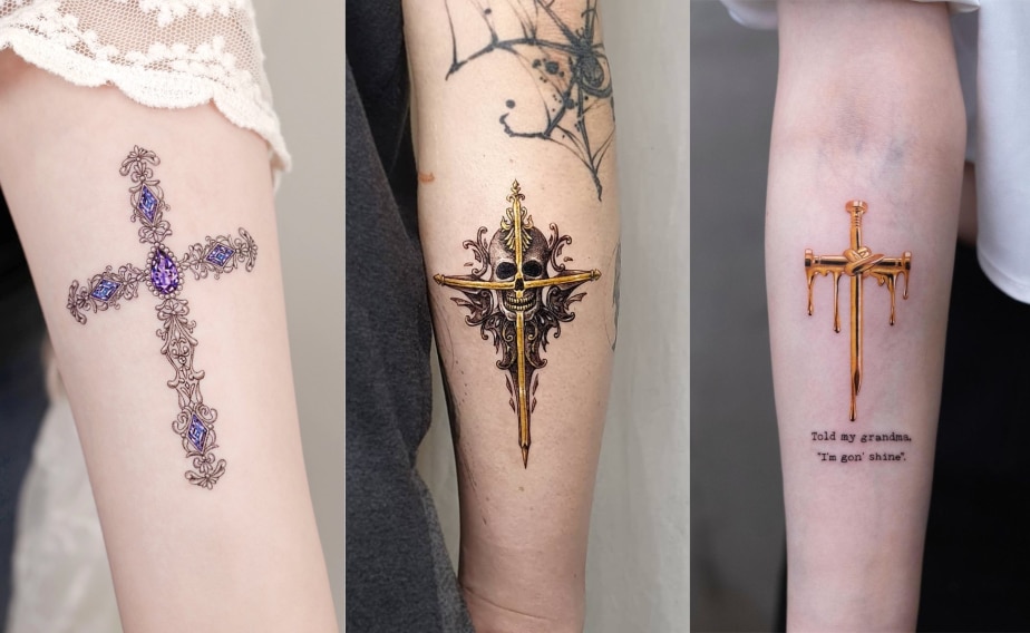 Это один из древнейших символов, используемых многими культурами по всему миру. Вертикальные и горизонтальные линии представляют природу отца и матери, а точка их встречи символизирует союз между материальным и духовным миром. Популярный эскиз — крест жизни. Это древнеегипетский символ, связанный с удачей.