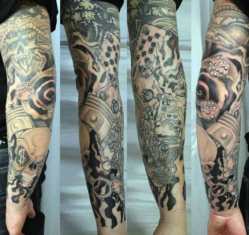 Существуют 4 типа нанесения татуировки на всю руку: