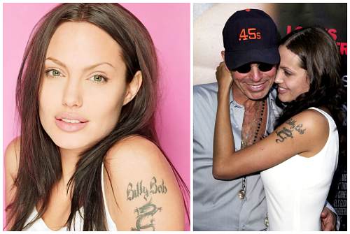 - История tattoo Анджелины Джоли не так безоблачна. Имя ее мужа Билли Боба ей пришлось долго сводить после разрыва отношений.