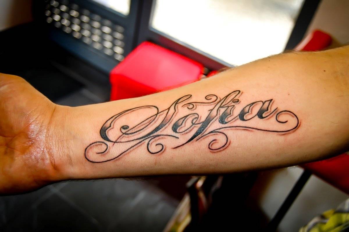 Фото тату надписи имена поможет оценить, как татуировка смотрится со стороны и насколько выигрышно вы сможете преподнести его тем, чьё имя красуется на вашей коже.