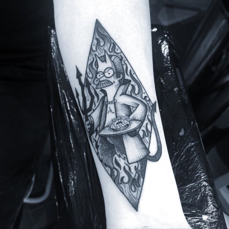 Завораживающие эскизы татуировок в стиле «треш-полька» повествуют о смерти, страхе и людских пороках. Сочетание чёрных и красных цветов делает эти тату еще более необычными.