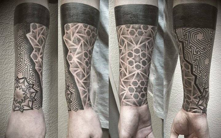 Между тем работа над такими сложными в исполнении работами требует от мастера большого профессионализма, терпения и своеобразного склада ума, ведь необходимо соблюсти идеальные пропорции, симметрию и четкость в узоре. Кроме того, все точки должны быть нанесены одинаково качественно, глубоко под кожу, благодаря чему татуировка сохранится в первозданном виде долгое время