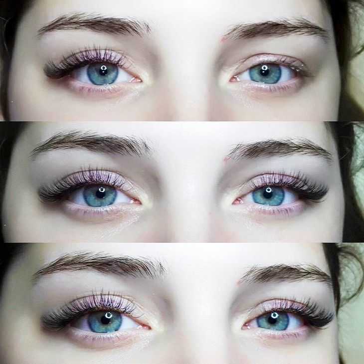 После завершения работы мастер осматривает глаза клиента. Полученный эффект закрепляется расчесыванием волосков. Продолжительность процедуры 1,5-3 часа.