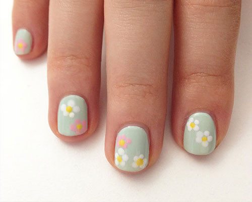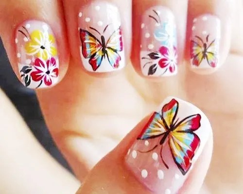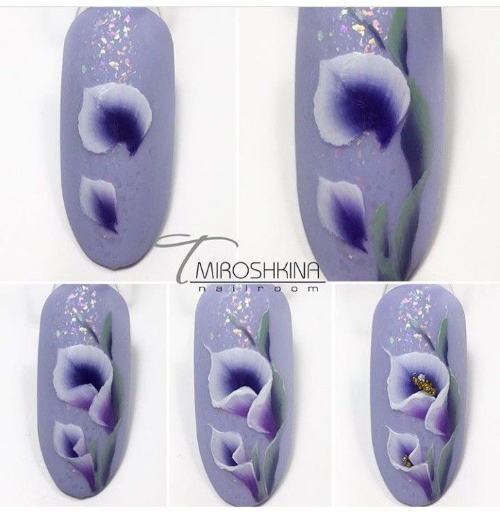 Цветы — самая благодатная тема в нейл-дизайне. Это могут быть простенькие цветочки в виде 6 точек, нарисованные с помощью дотса, или более сложные многоцветные варианты.