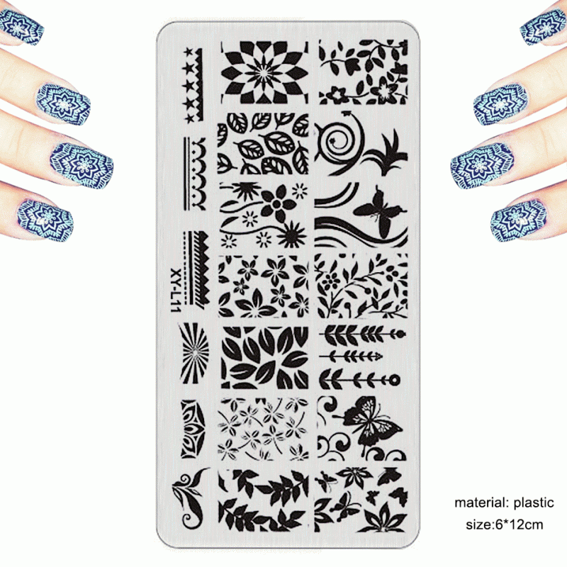 - Металлические диски или пластины, на которых заранее выгравированы разнообразные узоры, орнаменты или рисунки, которые впоследствии мы перенесем на ноготки.