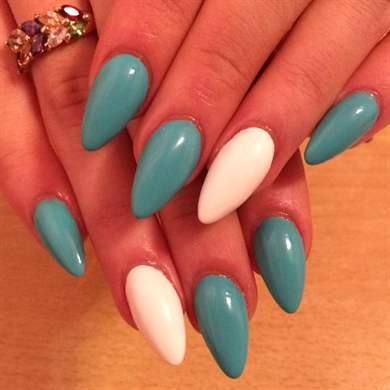 Форма стилет. Такую форму выбирают смелые и уверенные в себе женщины. Визуально удлиняя длину пальцев, они создают несколько хищный образ своей обладательнице. Мужчины боятся такую длину и форму.