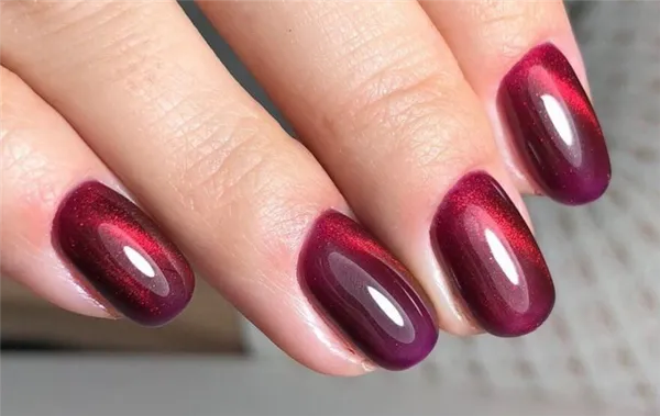 - Элегантное и модное бордовое «кошачье» покрытие для ноготков смотрится роскошно и стильно. Удачный выбор — матовый однотонный маникюр. Возможно воплощение разных идей дизайна бордовых ногтей: от росписи до сложных аппликаций.