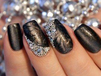 Дизайн с применением бисера и страз в сочетании с «кошачьем глазом» будет выглядеть красиво и модно