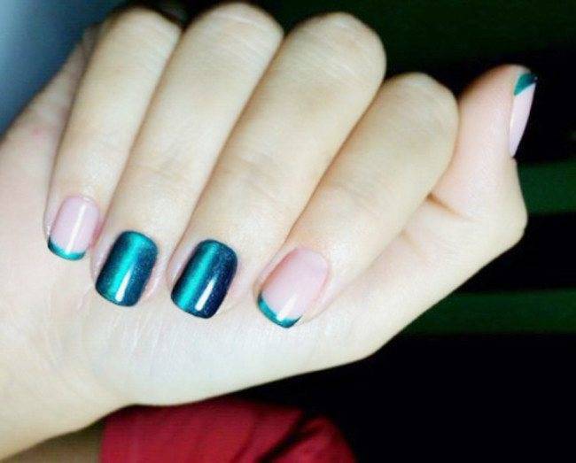 - «Френч». Мятно-серебристые кошачьи глазки в виде френча не дают отвести взгляд. Неожиданный стильный подход к оформлению классики.
