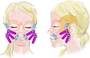 - Происходит серьёзное воздействие на лицевые мышцы. Из-за этого разглаживаются морщины и складки, овал лица делается подтянутым без использования хирургических вмешательств и инъекций.