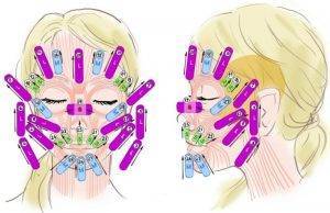 - Не доставляет дискомфорта. Если осуществить крепление тейпов строго по схеме и с учётом всех рекомендаций, то неприятных ощущений не возникнет. Скорее наблюдается расслабляющий эффект, с мышц лица снимается перенапряжение.