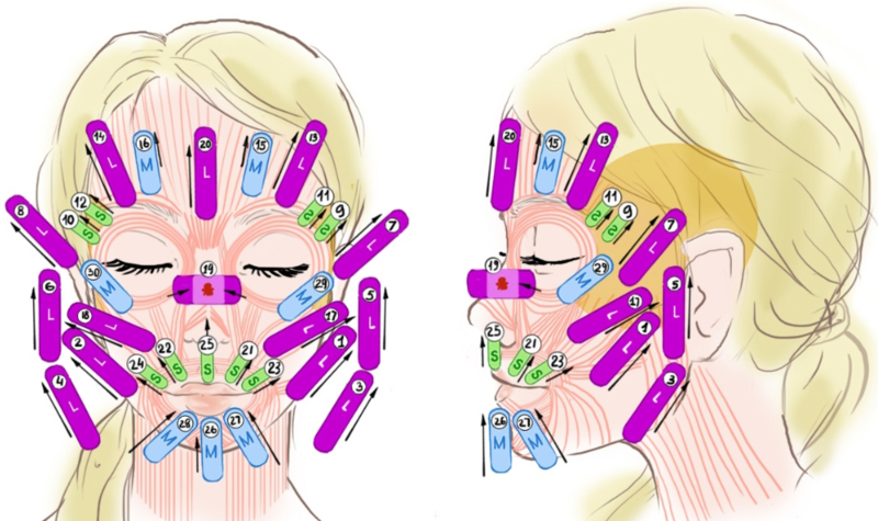 Тейпирование лица схемы приклеивания лимфа-тейп (в виде веера)