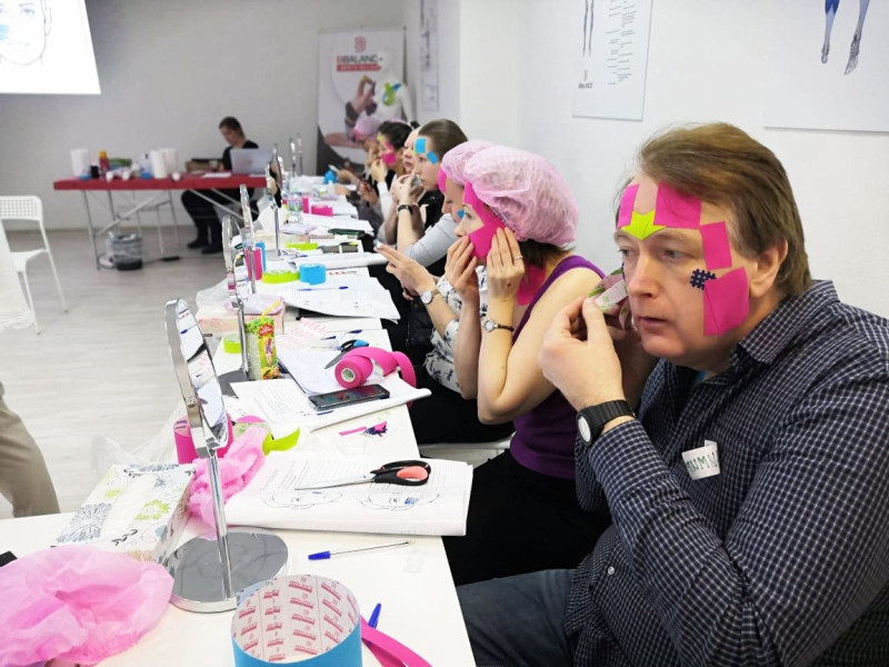 Кинезиотейпирование это нанесение специальных липких лент на повреждённые участки тела для их восстановления после ушибов и травм, фиксации связок. Также используется при висцеральных, неврологических и микроциркуляторных изменениях.