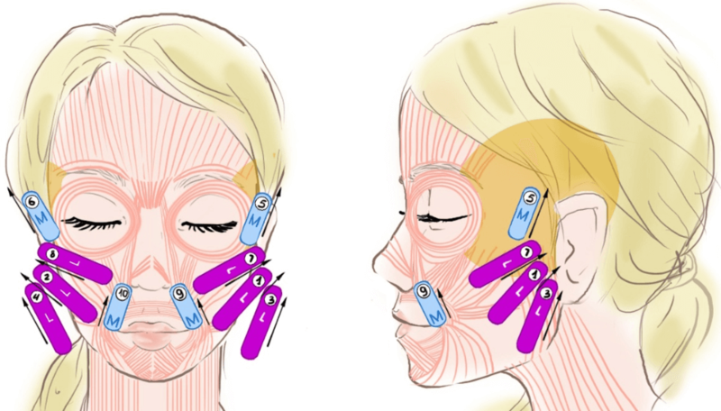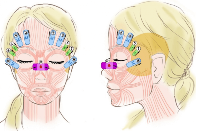 - используйте атлас мышц лица, где обозначены все лимфатические узлы. Он поможет правильно наложить тейп;