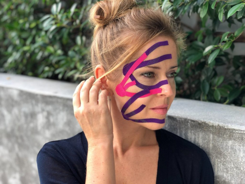 «Кинезиотейпирование лица – это метод альтернативной медицины и неинъекционной косметологии, предполагающий наложение эластичного пластыря на определенные участки лица: лоб, скулы, межбровную область, на кожу в Т-зоне, вдоль овала лица».