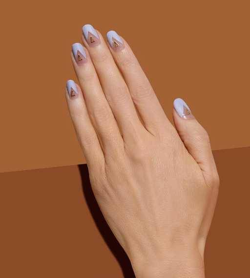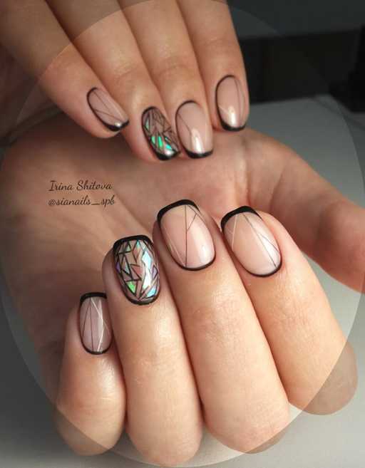 Минималистичный дизайн с треугольниками из битого стекла и контурной обводкой ногтей выглядит очень стильно sianails_spb