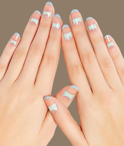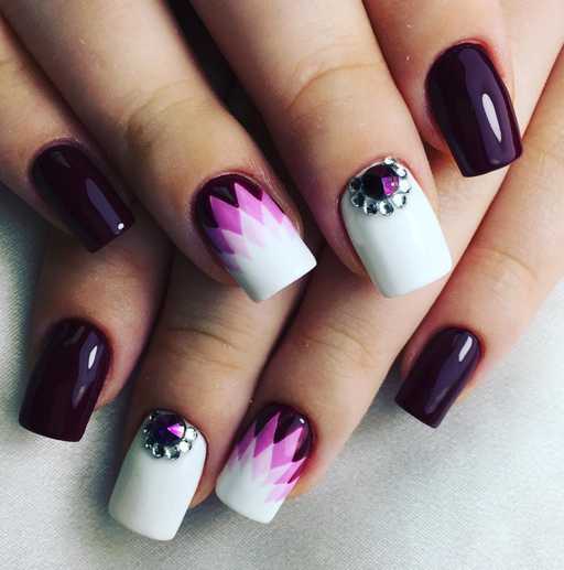 Очень популярный дизайн под названием «геометрический градиент». Чтобы цвета подходили друг, смешайте темный цвет с белым в различных пропорциях для мягкого перехода iulianail