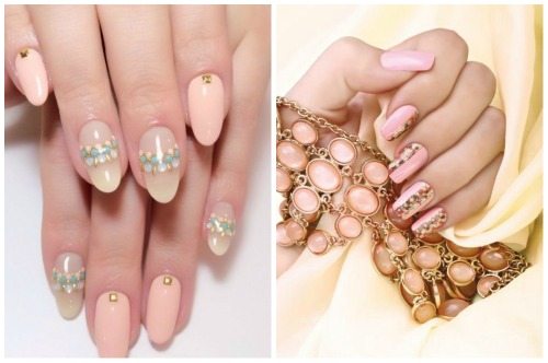 Те, кто выбирает нюдовые оттенки лака, как правило, любят минимализм. Если не хочется наносить наклейки, лепить стразы и декорировать пластину рисунками — выбирайте втирку. Достаточно покрыть жемчужным составом пару пластин и вот уже дизайн становится необычным и стильным.