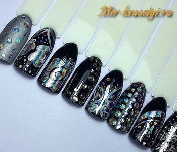 Оптимальный дизайн для голографического пигмента — омбре, темная подложка.