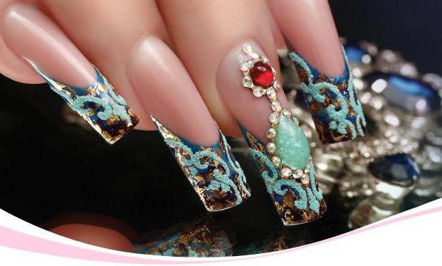 Еще одним вариантом декорирования в духе нейл арт является объемный дизайн. При помощи разноцветных акриловых пудр и гелей на ногтях лепятся всевозможные фигурки. Это могут быть и цветы, и бабочки, и даже сказочные персонажи. Объемный дизайн смотрится очень оригинально, но имеет свои минусы. С ним не очень неудобно выполнять какую-либо работу. Таким образом, если вы захотели, чтобы на ваших ноготках распустились розы или георгины, приберегите это желание до ближайшего праздника