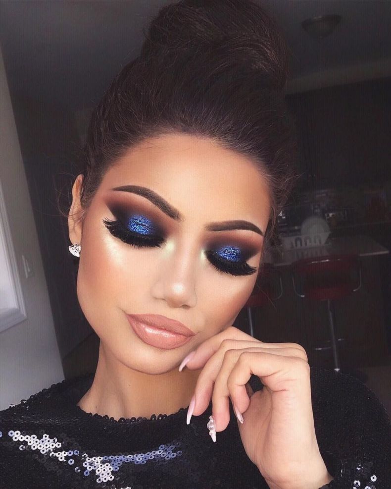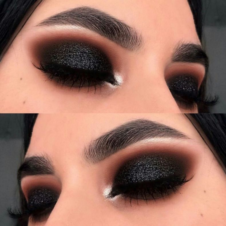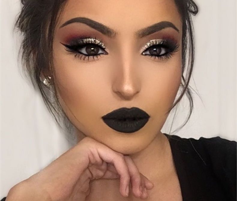 Черный вечерний макияж можно выполнить в нетривиальном, восточном исполнении. Для того, чтобы создать черный вечерний макияж в восточном стиле вам понадобится обильно прокрашивать веки, придавая им миндалевидную форму, характерную для женщин Востока. Нелишним будет наличие четких графичных стрелок, причем как по линии роста верхних, так и нижних ресниц. Дополнив образ яркими аксессуарами и эклектичными безделушками – поверьте, ваш образ станет незабываемым!