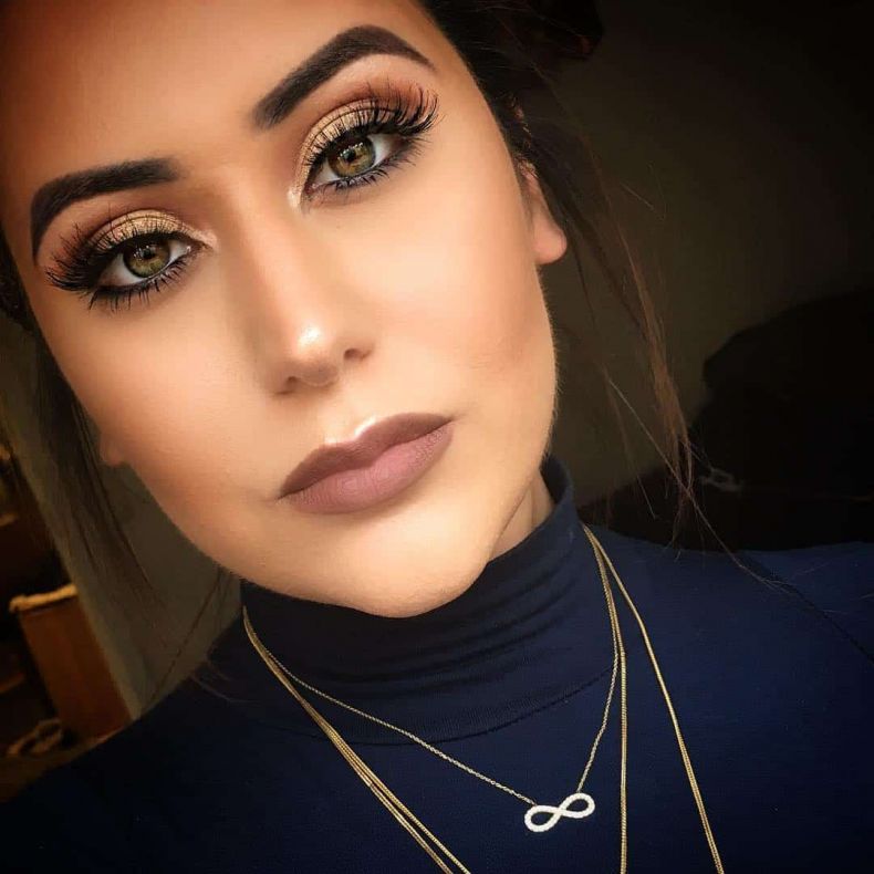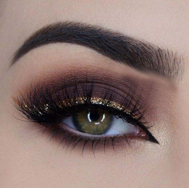 - Для карих глаз. Для девушек, которые обладают карими глазами, отличным вариантом станут тени, выполненные в серо-коричневых, коричневых оттенках. Они подчеркнут цвет глаз. Также, часто макияж дополняется при помощи тонких или толстых стрелок. Они подарят макияжу изящность и женственность.