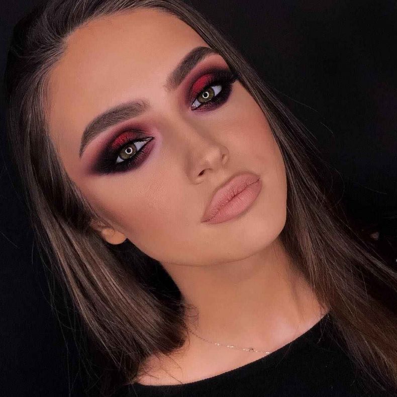 Яркие девушки, выбравшие красное платье, должны делать акцент либо на губах, либо на глазах. Для вечернего макияжа лучше всего подойдет make-up в стиле «смоки айс». Женщины цветотипа Зима могут сделать его в дымчато-серых тонах, остальные — в классических оттенках.