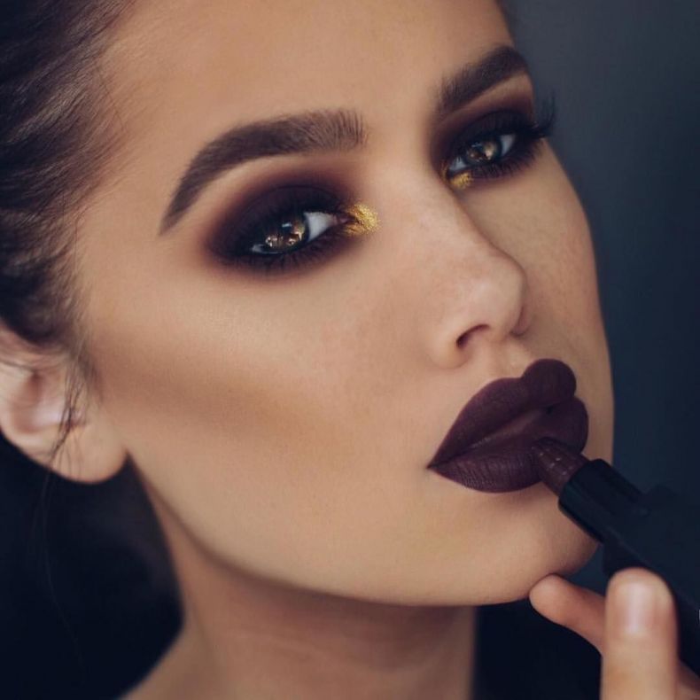 Макияж, выполненный с использованием темной косметики, подойдет для девушек с любым цветотипом. У представительниц с контрастными внешними данными он подчеркнет разящий взгляд и смуглую кожу.