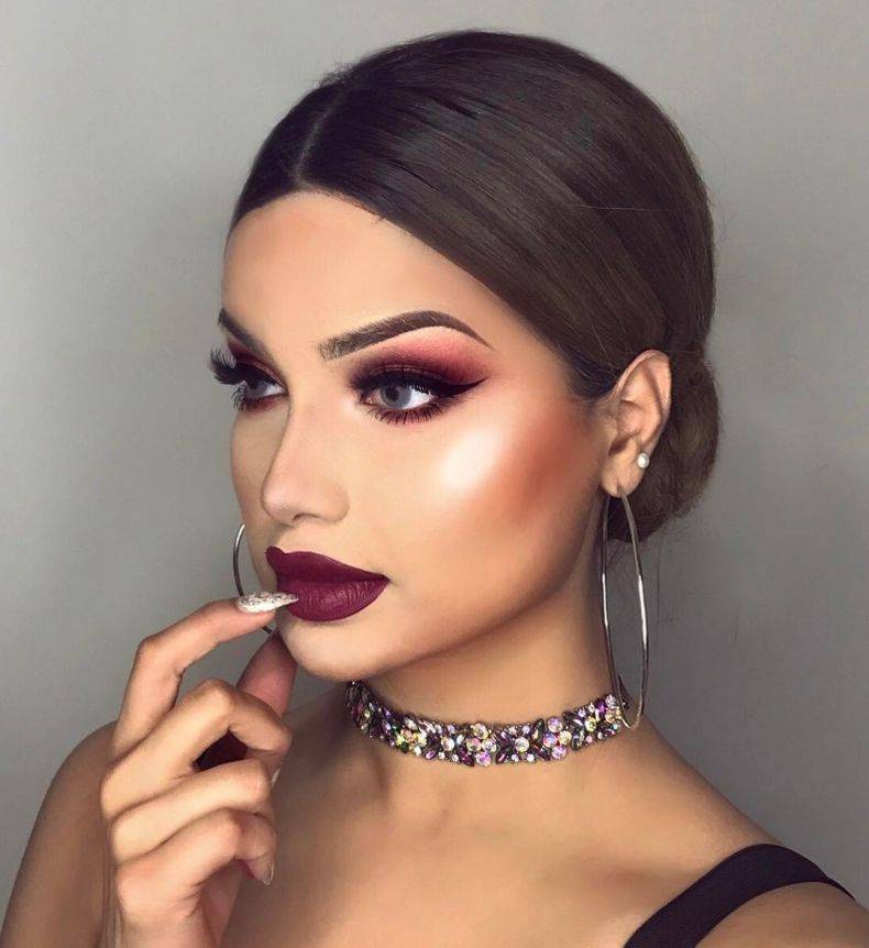 Сложнее всего при макияже под этот наряд придется брюнеткам, так как этот тип требует больше всего аккуратности в штрихах. Если темные не только волосы, но и кожа, то розовые оттенки противопоказаны. Они в сочетании с красным платьем усилят все неровности и придадут коже лица неприятный розовый цвет, который будет смотреться вульгарно.