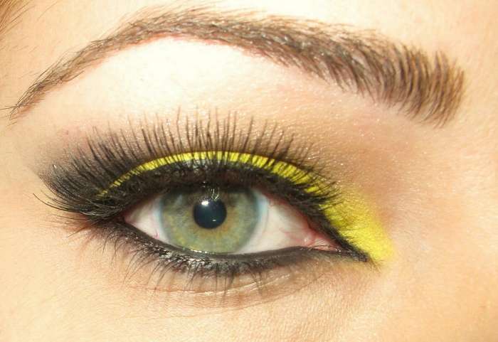 черная подводка по внутренней линии роста ресниц, как для верхнего, так и для нижнего века. Такой подход визуально уменьшит размер глаз, и выделит темные круги под ними. Светлый цвет глаз растворится на фоне сильного колера и глаза потеряют свою естественную привлекательность;