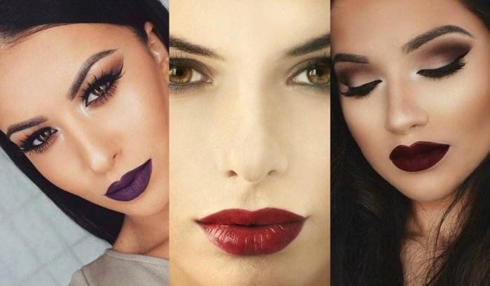 Если у вас иссиня-черные волосы и карие глаза то выбирайте для макияжа насыщенные оттенки, близкие к вишневому и малиновому. В случае если у вас светлые глаза (серые, зеленые, голубые), то рекомендуем пользоваться помадой лилового или розового оттенка.