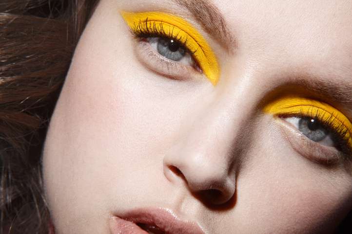 Далее, наносим светло-оранжевый оттенок на всю поверхность век — от середины неподвижного века до ресниц.