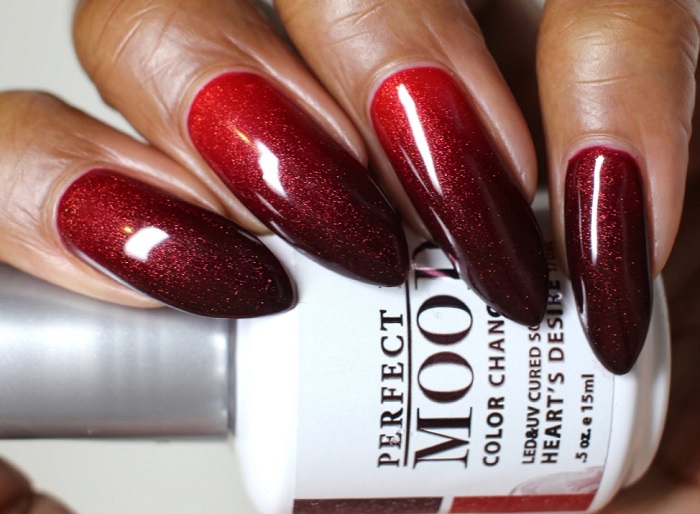 В зависимости от температуры окружающей среды, ваш стильный маникюр любого цвета, поменяет оттенок от темного к светлому, и наоборот.