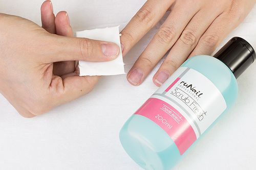 Затем нужно обезжирить ногтевую пластину. Для этого лучше использовать безворсовые салфетки, в таком случае никакая ворсинка не останется прилипшей намертво к ногтю