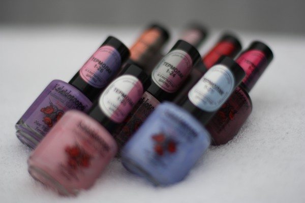 Впереди весна, а значит, контраст температур позволит любоваться изменениями оттенков маникюра по максимуму. Поэтому пора выбирать термолак. На рынке нейл-продукции представлено не так много торговых марок, которые могут предложить такой продукт. Самыми популярными являются термолак для ногтей Dance Legend и Kaleidoscope. Также вы сможете найти термолаки следующих производителей косметики: Claires Mood, Dona Mirelle, F.u.n.lacquer, LVMAY Chameleon.