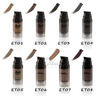 Высокопигментированное средство для бровей Манли про отличается широким выбором подтонов. В линейке представлено 8 оттенков. Флаконы с дозатором удобны и экономны в использовании. Средство мягкое, легко ложится. Стоимость – 1200 рублей.