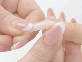 - Усовершенствование формы ногтей после полимеризации материалов, за счет обрабатывания пилочкой боковых сторон ногтя и стыка геля с натуральной пластиной.