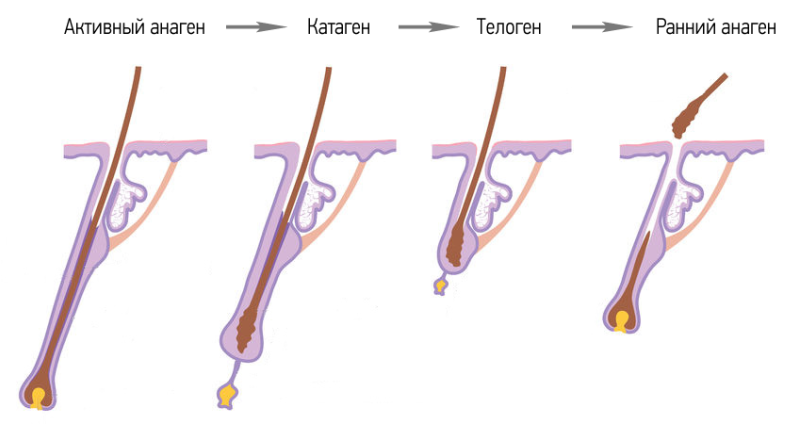 Срок жизни волоса колеблется от 2 до 5 лет, и этот жизненный цикл состоит из трех стадий. Каждый волосяной фолликул генетически запрограммирован на производство примерно 25-27 волос.