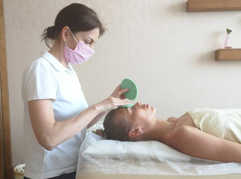 На первом этапе происходит удаление омертвевших клеток и очищение кожи. Особый состав эссенции спонжа с антибактериальным, противовоспалительным, успокаивающим, улучшающим кровообращение, тонизирующим эффектами способствует укреплению соединительных тканей кожи, стимулирует обновление клеток, регулирует работу сальных желез, возвращая коже тонус.