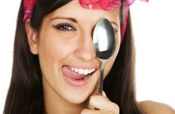 - Достав ложки из миски с холодным отваром, их на несколько секунд прикладывают к отекшим векам: кожу век необходимо охладить лишь слегка, не допуская серьезного переохлаждения. С помощью этого действия можно устранить мешки и отеки, а также улучшить окраску кожных покровов под глазами.