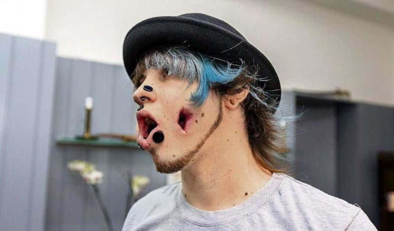 Парень объяснил, что дыры на лице не мешают ему в повседневной жизни, однако отмечает, что в процессе еды пища часто выпадает через отверстия. Язык также не остался без апгрейдов — он разделен надвое.