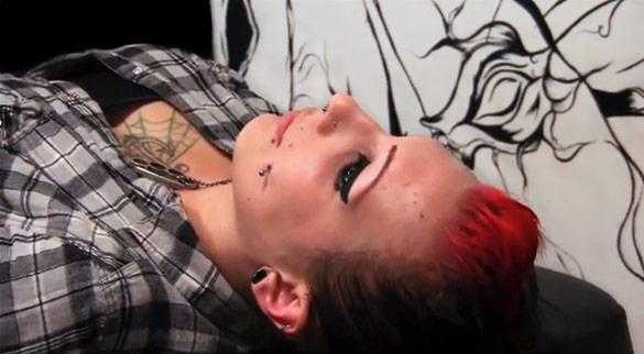 Второй вопрос, интересующий многих: «Как же удалось сделать такие гигантские дыры на лице?» Делаются они по тому же принципу, что и тоннели в ушах. Существует 2 способа. Первый, менее болезненный, но более длительный имеет такую схему: