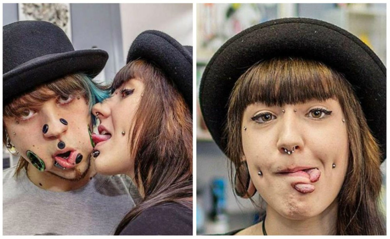 Пока повторить подвиг Юэля не пришло в голову никому, но многие неформальные девушки делают пирсинг на щеках или украшают их микродермалами.