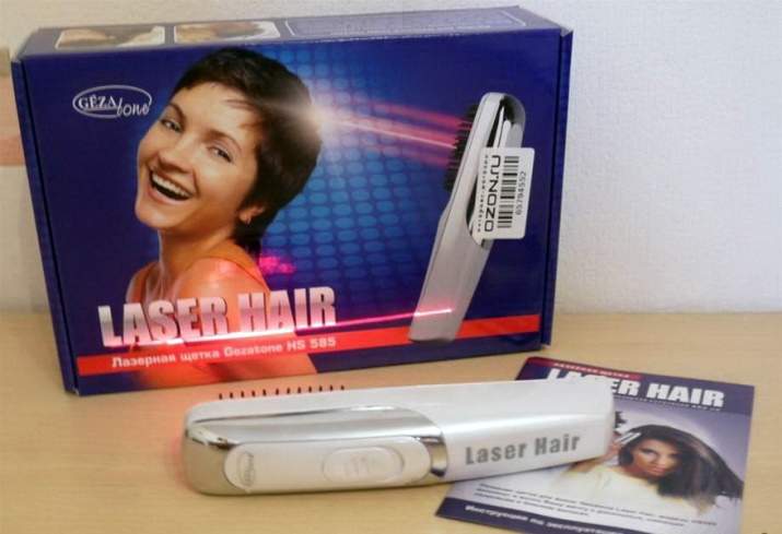 Щётка-массажёр фирмы Gazatone Laser Hair. Гребень включает в себя две насадки. Первая является массажёром с низкоинтенсивным лазерным излучением, которое помогает росту здоровых и крепких волос. Использовать такую щётку можно на протяжении пятнадцати минут. Вторая насадка включает инфракрасное излучение и озонирование. Её использование не должно превышать двух или трёх минут.