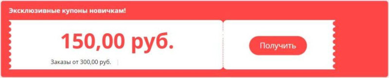 Купон на скидку 150 рублей от 300₽ для новых пользователей