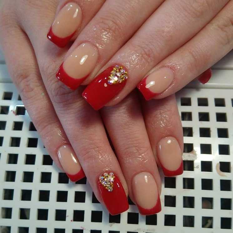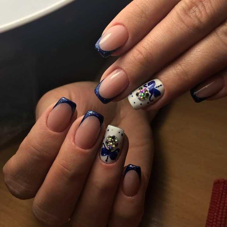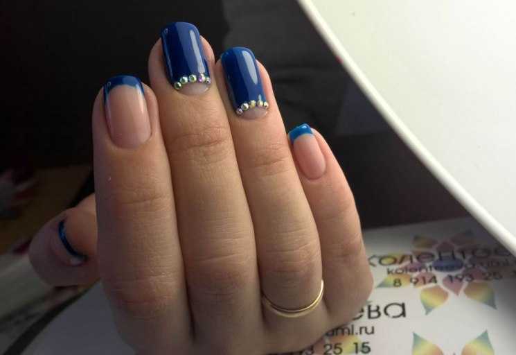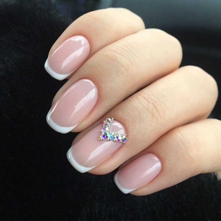 Самым распространённым является французский маникюр со стразами.